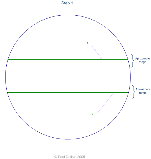 | The green circles shows the points that are used to draw the new lines. The other point is usually where the base of a triangle meets the vertical axis. New reference points are created every time a new line is drawn. |